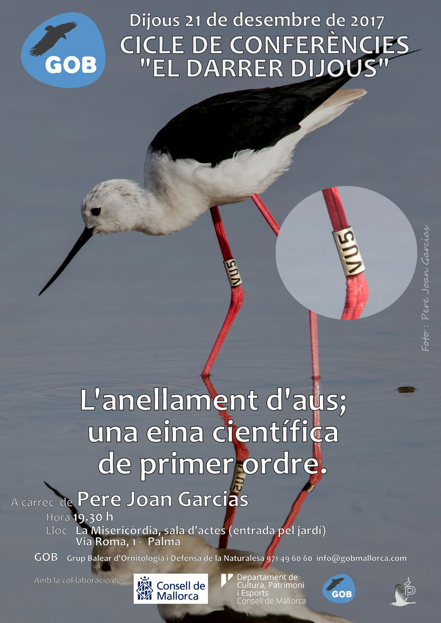 Dijous 21 de desembre, 19:30 h. Xerrada del cicle "el darrer dijous": l'anellament d'aus, una eina científica de primer ordre. A càrrec de Pere Garcias. a la Misericòrdia, Palma. |