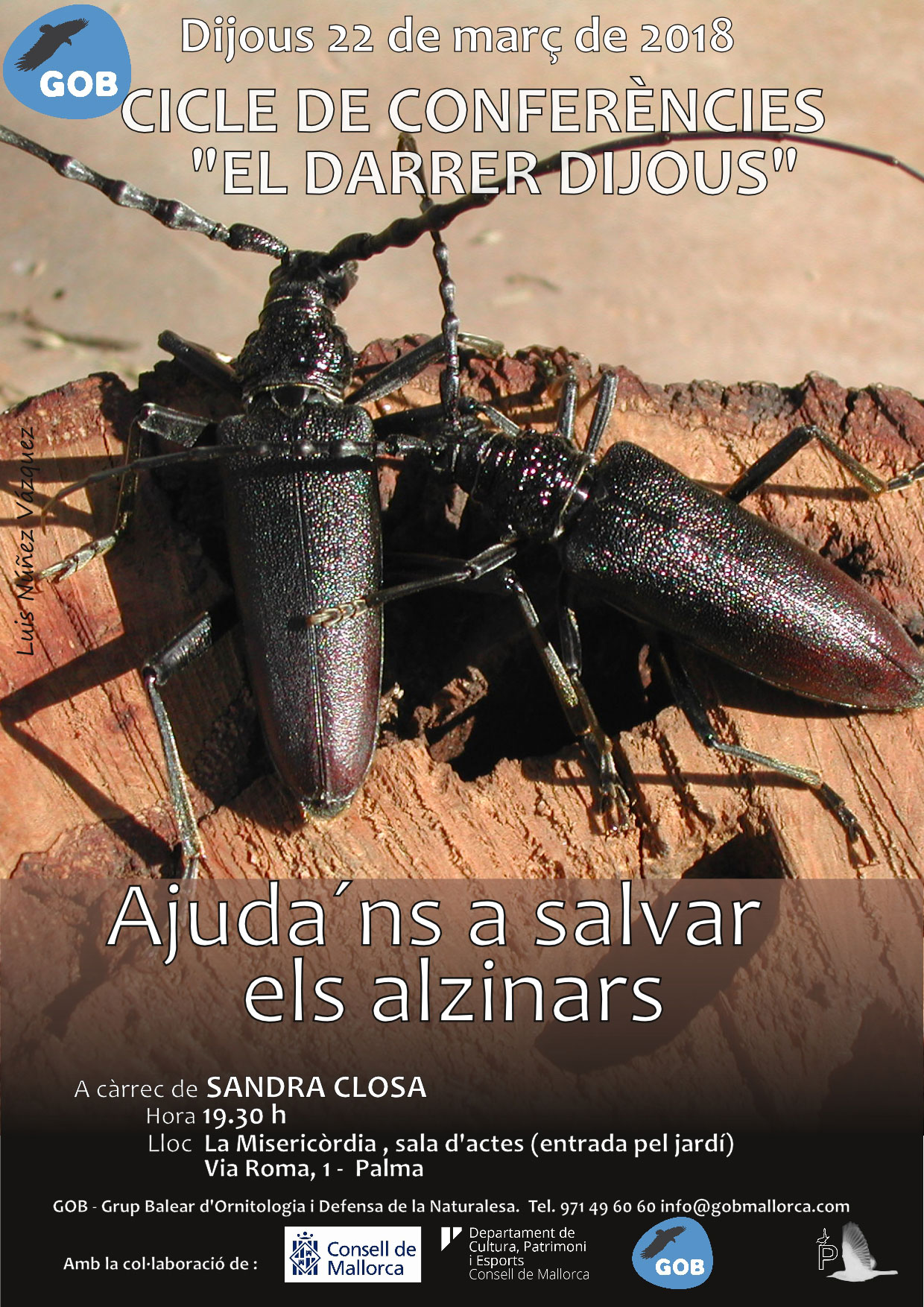 Dissabte 17 de març, matí. Sortida al bosc de Bellver per escoltar i aprendre els cants de les aus. De la mà de Xavier Llabrés. Per a més detalls i inscripció, contactau amb Aquesta adreça de correu-e està protegida dels robots de spam.Necessites Javascript habilitat per veure-la.. ![]()