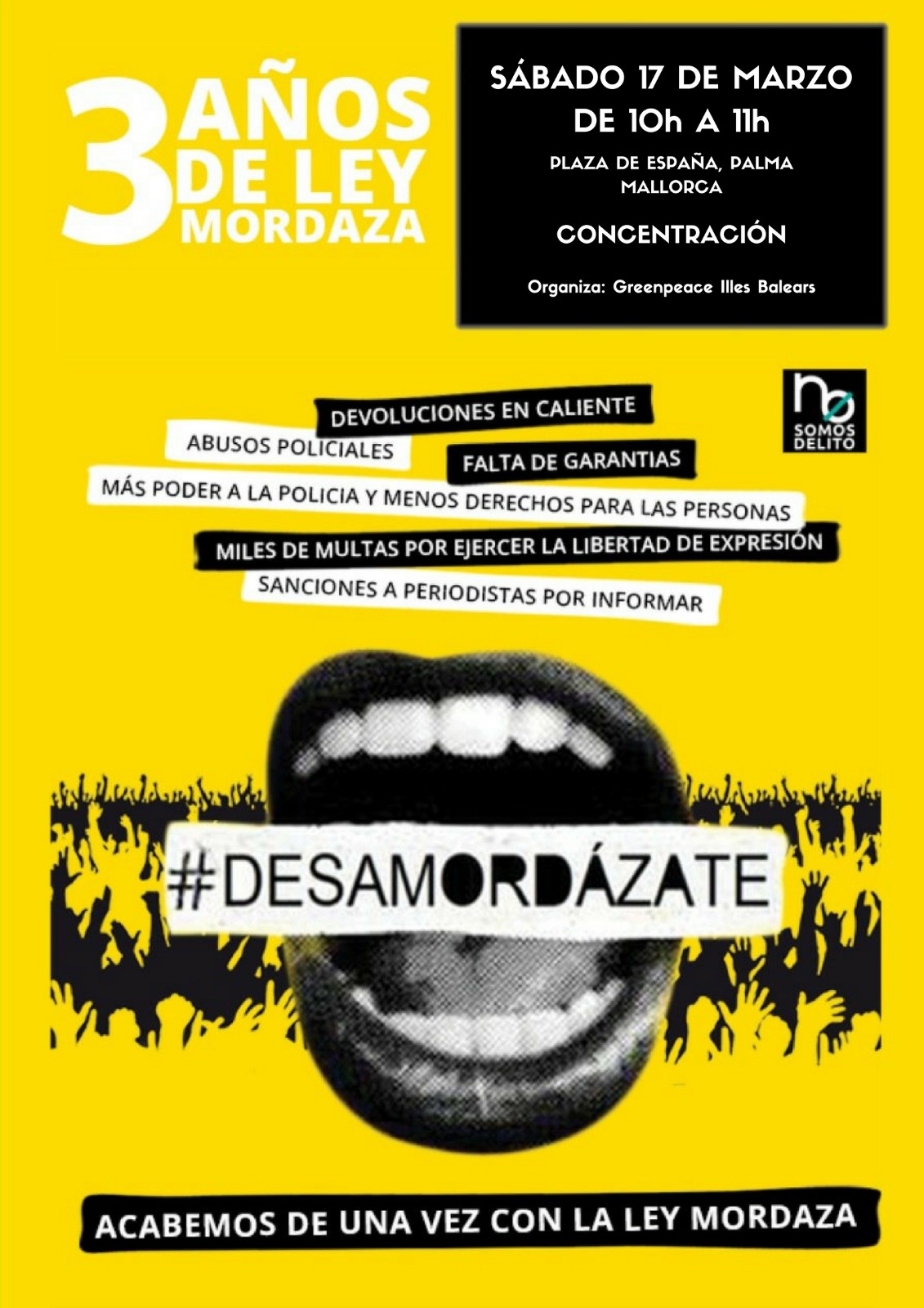 Dissabte 17 de març, 10h. Concentració contra la llei mordassa. A la plaça d'Espanya. Organitza Greenpeace Balears. ![]()