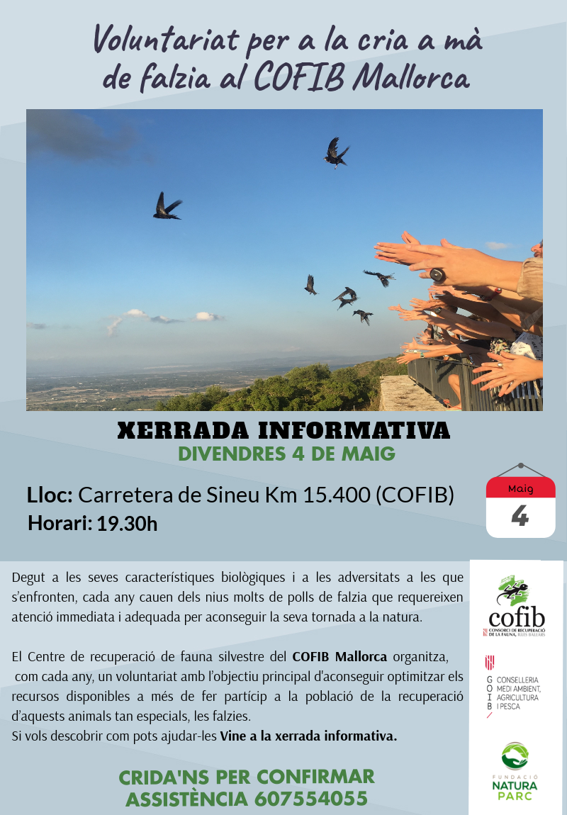 Divendres 4 de maig, 19:30h. Xerrada informativa: "Voluntariat per a la cria mà de falzia". Al COFIB.