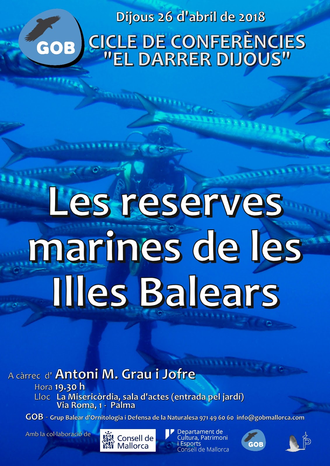 Dijous 26 d'abril, 19:30h. Xerrada "el darrer dijous": Les reserves marines de les Illes Balears. A la sala d'actes de La Misericòrdia, Palma.