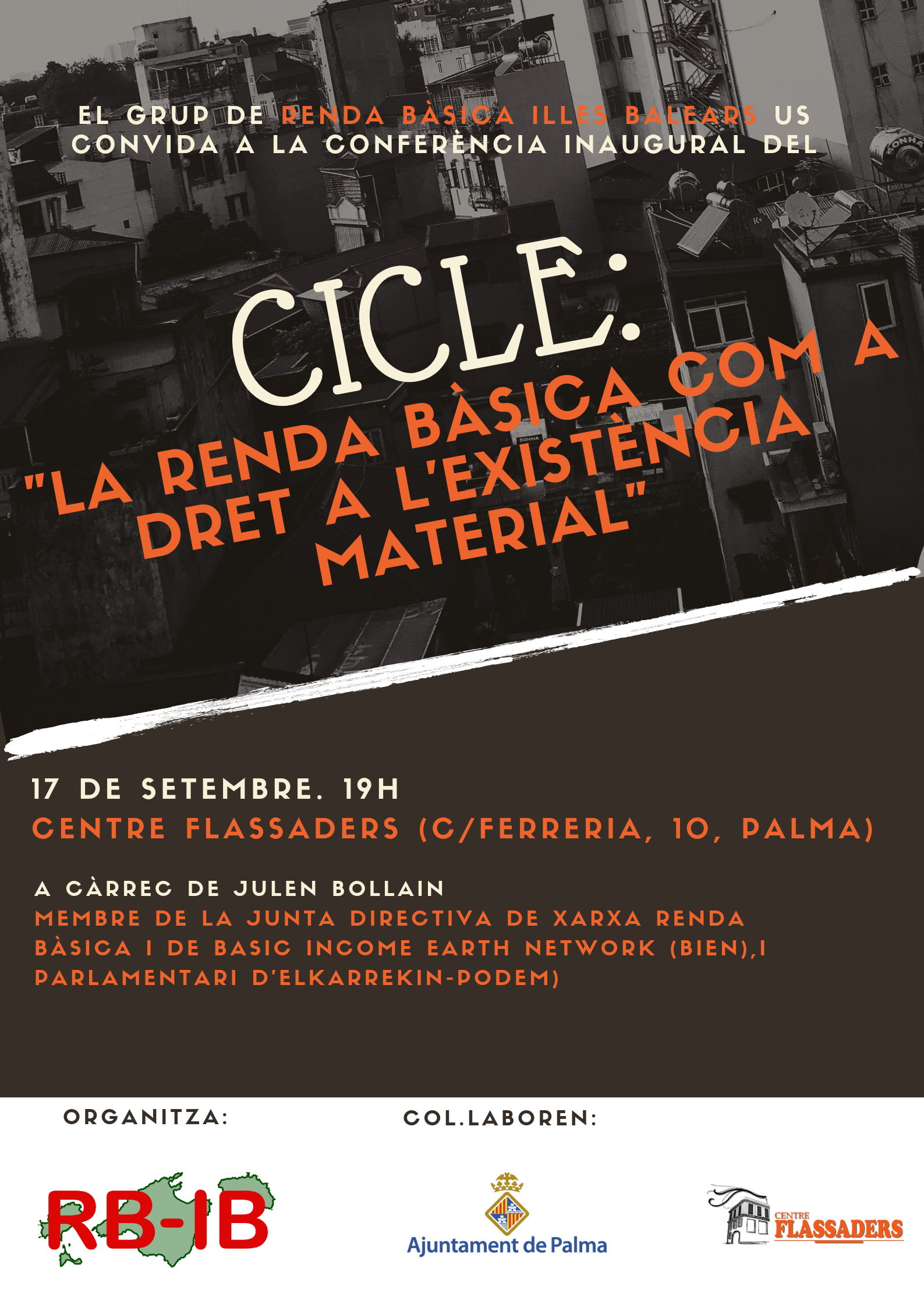 Dilluns 17 de setembre, 19h. Conferència: La renda bàsica com a dret a l'existència material. Al centre Flassaders, Palma. ![]()