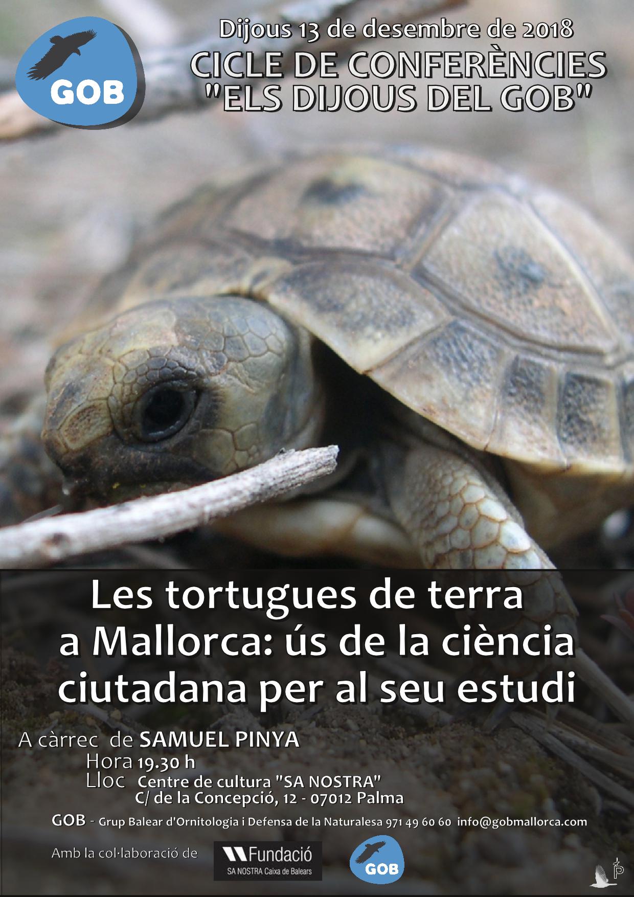 Dijous 13 de desembre, 19:30h. Cicle els dijous del GOB: Les tortugues de terra a Mallorca: ús de la ciència ciutadana per al seu estudi. Al centre cultural "Sa Nostra", Palma. ![]()