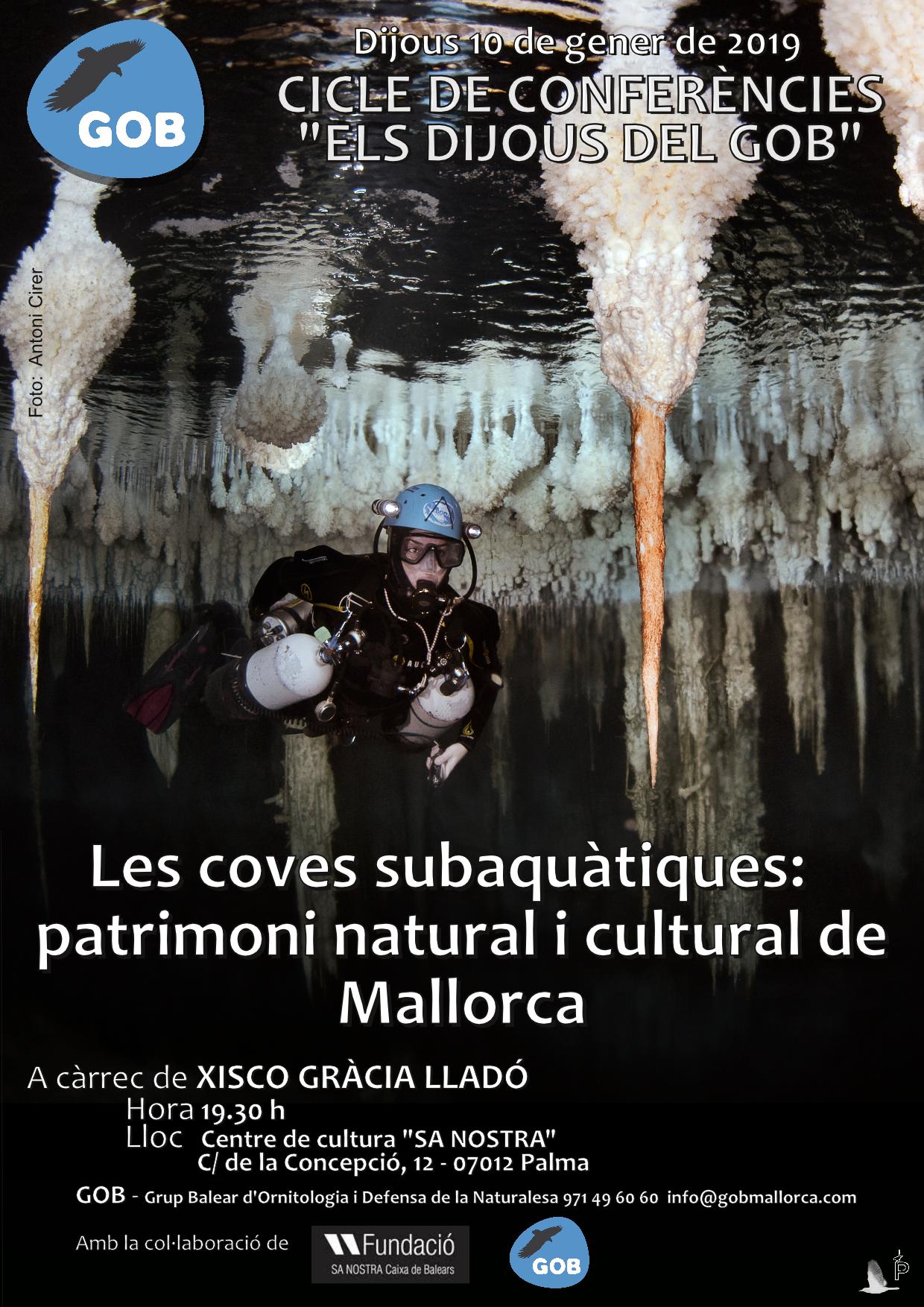 Dijous 10 de gener, 19:30h. Cicle "els dijous del GOB": Les coves subaquàtiques de Mallorca, patrimoni natural i cultural. Al Centre de Cultura "Sa Nostra". ![]() |
