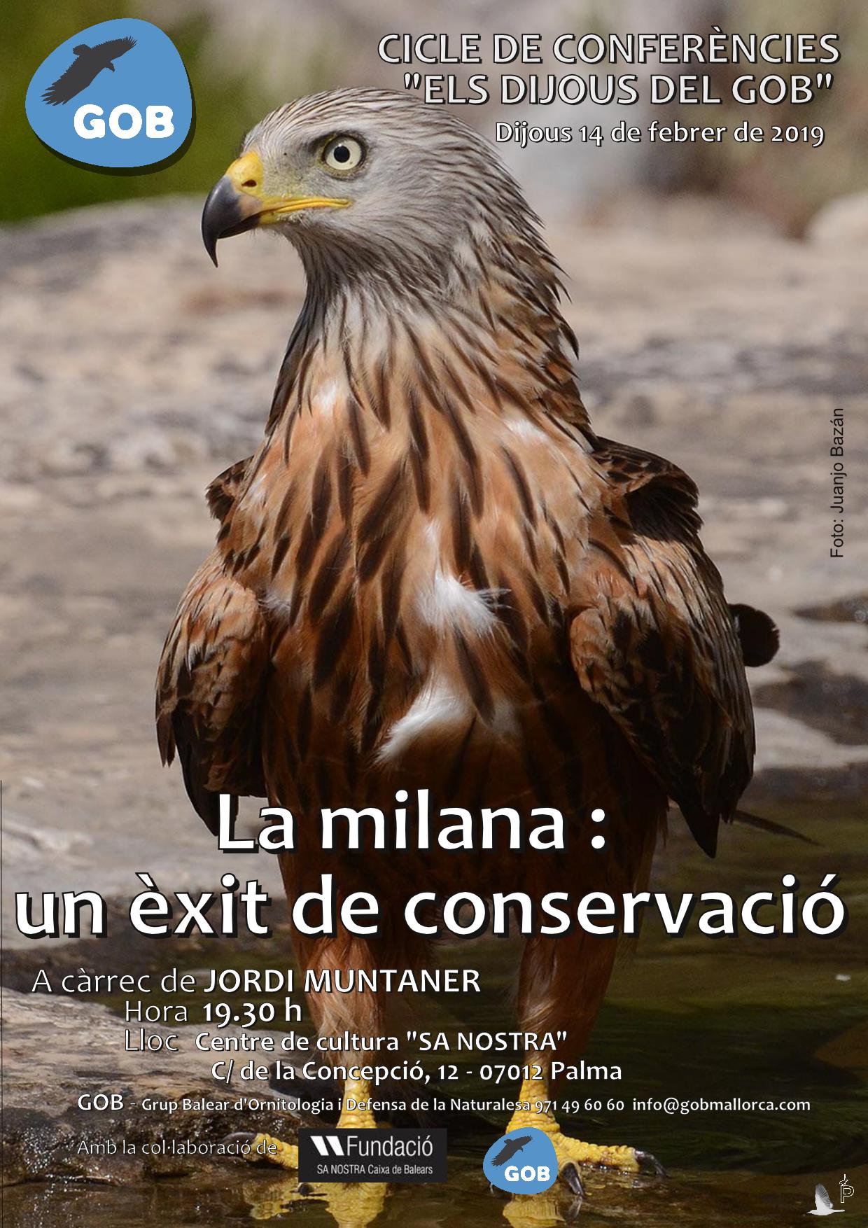 Dijous 14 de febrer, 19:30h. Xerrada del cicle "els dijous del GOB": La milana, un èxit de conservació.