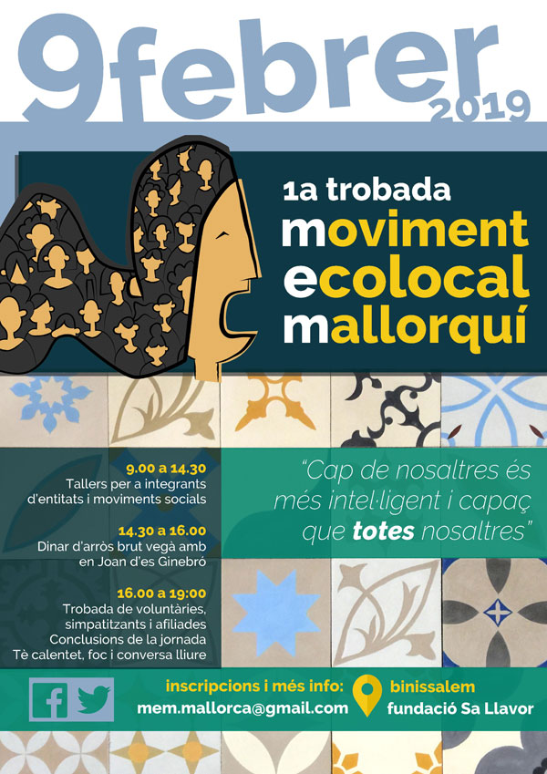 Divendres i dissabte, 8 i 9 de febrer. "Sense límits? mobilitat, infraestructures, territori i creixement", jornades d'informació i debat. Organitzat per la Plataforma Antiautopistes. Al claustre de Sant Bonaventura, Llucmajor. Aquí pots consultar el programa. ![]()