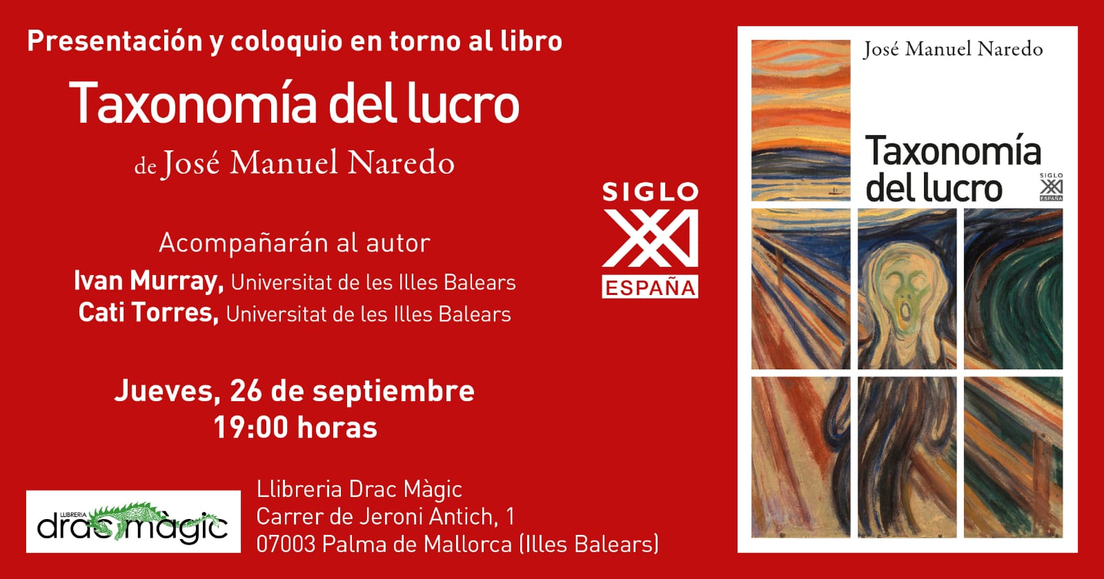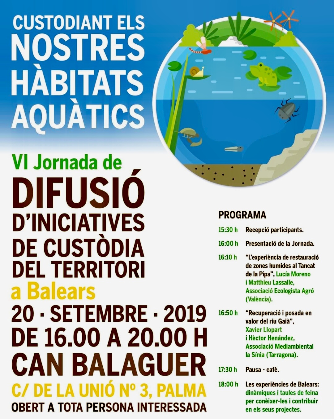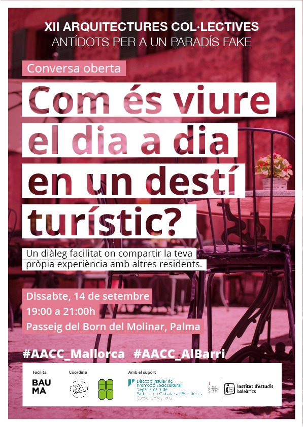 Agenda recomanada 13, 14 i 15 de setembre. Trobades fotogràfiques per la conservació. A Calvià. Cal inscripció aqui. ![]() Dissabte 14 de setembre, 19h. Conversa oberta: Com és viure el dia a dia en un destí turístic?. Al Passeig del Born del Molinar, Palma. ![]() Divendres 20 de setembre, 16h. Custodiant els nostres hàbitats aquàtics. VI jornada de difusió d'iniciatives de custòdia del territori. A Can Balaguer, Palma. ![]() Dilluns 23 de setembre, 18h. Taller: com el finançament col·lectiu contribueix a tancar el cercle? A l'Elèctrica, plaça de Quadrado 98, Palma. ![]() Dijous 26 de setembre, 19h. Presentació i col·loqui sobre el llibre "Taxonomia del lucre". A la Llibreria Drac Màgic, Palma. ![]() |