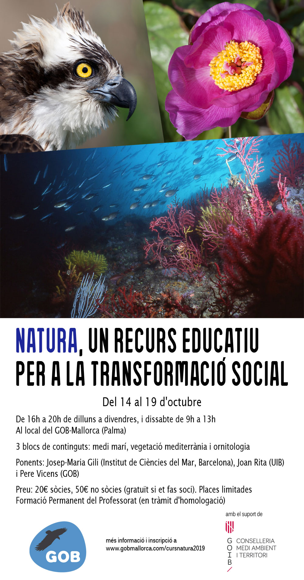 Curs de natura, darreres places Ja hauràs sabut que del 14 al 19 d'octubre tenim prevista la realització d'aquest curs ben interessant, amb tres blocs de contingut (medi marí, vegetació mediterrània i ornitologia). |