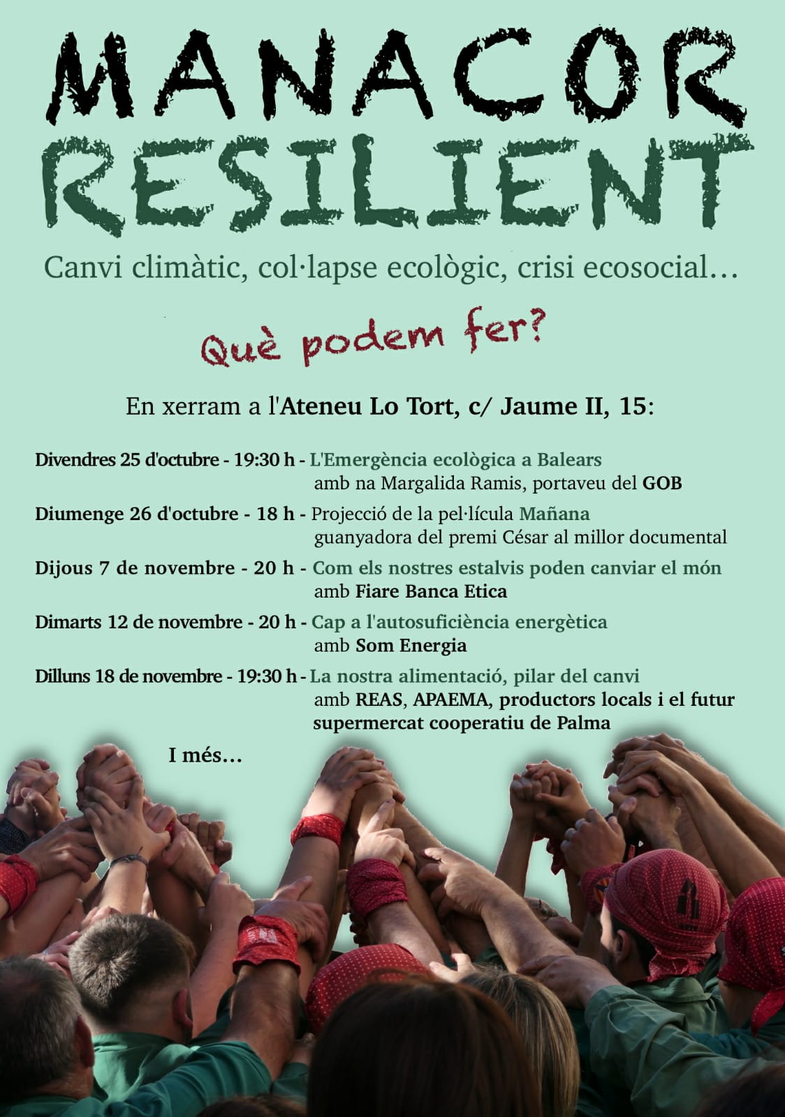 Agenda recomanada Dijous 24 d'octubre, 19:30h. Xerrada del cicle "els dijous del GOB": la flora dels illots de les Balears. A càrrec de Joan Rita. Al Centre de Cultura "Sa Nostra", Palma. ![]() Divendres 25 d'octubre, 19:30h. Xerrada: L'emergència ecològica a les Balears. A càrrec de Margalida Ramis. Cicle de xerrades de Manacor Resilent. A l'Ateneu Lo Tort, Manacor. ![]() Dissabte 26 i diumenge 27 d'octubre. Leatherfest. A Inca. Es farà acció solidària a benefici del GOB! ![]() |