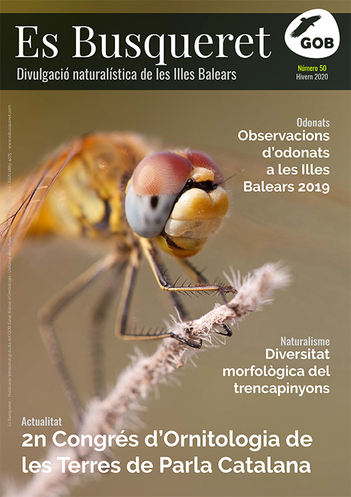 Es Busqueret número 50! Ja tens a la teva disposició el número 50 d'Es Busqueret, amb 106 pàgines plenes de divulgació naturalística de les Illes Balears. A més de seccions que ja coneixes, inclou una nova secció d'odonats, altra sobre plantes de les Balears i un repàs sobre el magnífic Congrés d'Ornitologia de les Terres de Parla Catalana celebrat a Menorca. Esperam que t'agradi! Aquest i els números anteriors, a www.esbusqueret.com