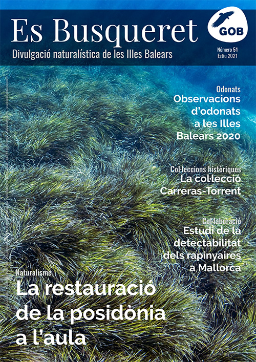 Nou número d'Es Busqueret Acabam de treure del forn el número 51 d'Es Busqueret, amb 96 pàgines plenes d'informació sobre la nostra natura. Inclou articles sobre l'estudi de la posidònia a l'aula, la detectabilitat de rapinyaires a Mallorca, la col·lecció Carreras-Torrent, l'estudi dels moviments de la noneta, l'anuari d'observacions d'odonats 2020, ... i molt més! Com ja saps, el pots disfrutar a www.esbusqueret.com.